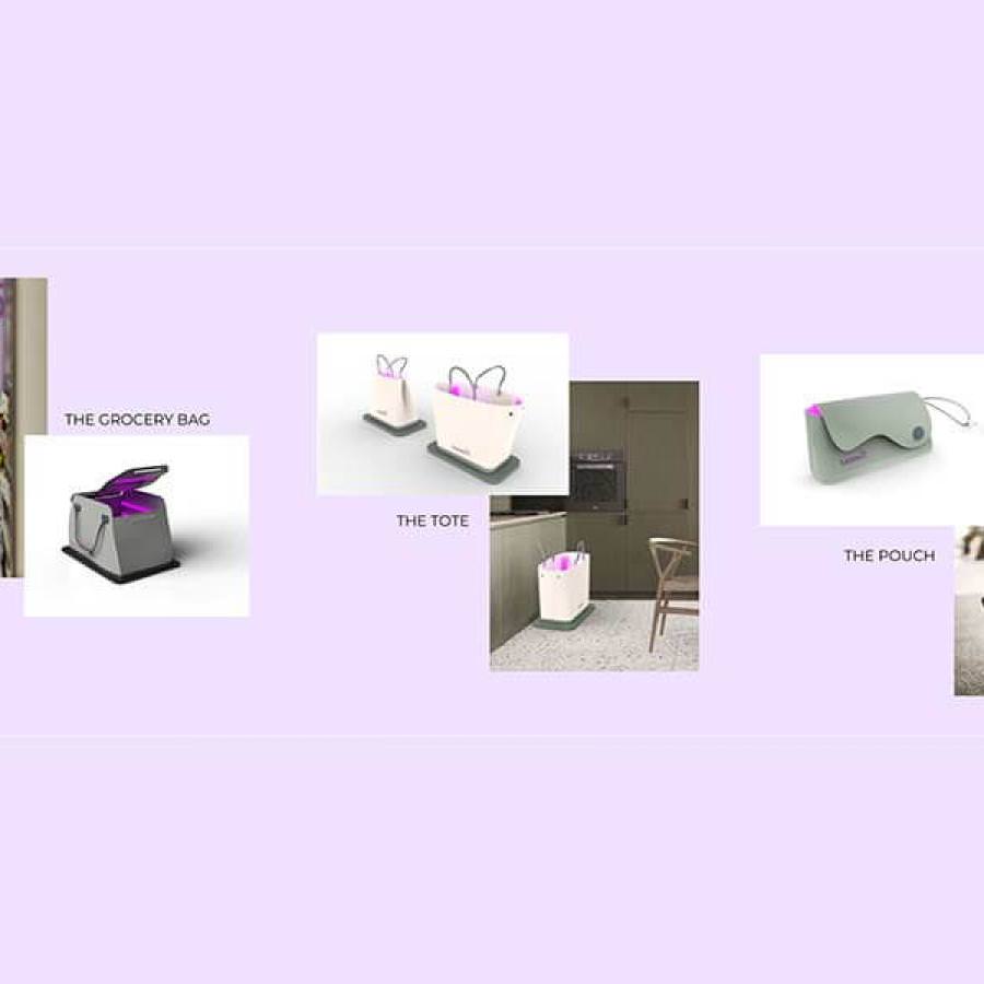 Nous avons imaginé une série de trois sacs possédant des LED UV C sur les parois intérieures. Les rayons émis permettent de tuer un grand nombre de germes se trouvant sur la surface extérieure des objets étant contenus dans les sacs : bactéries et virus pathogènes en tous genres, dont le coronavirus, sont éliminés en seulement dix minutes. Les deux sacs les plus gros ne possèdent pas de batterie mais un capteur sans fil, ils seraient livrés avec un tapis d'activation. Une fois les sacs déposés sur le tapis, le cycle de dix minutes s'enclenche automatiquement.